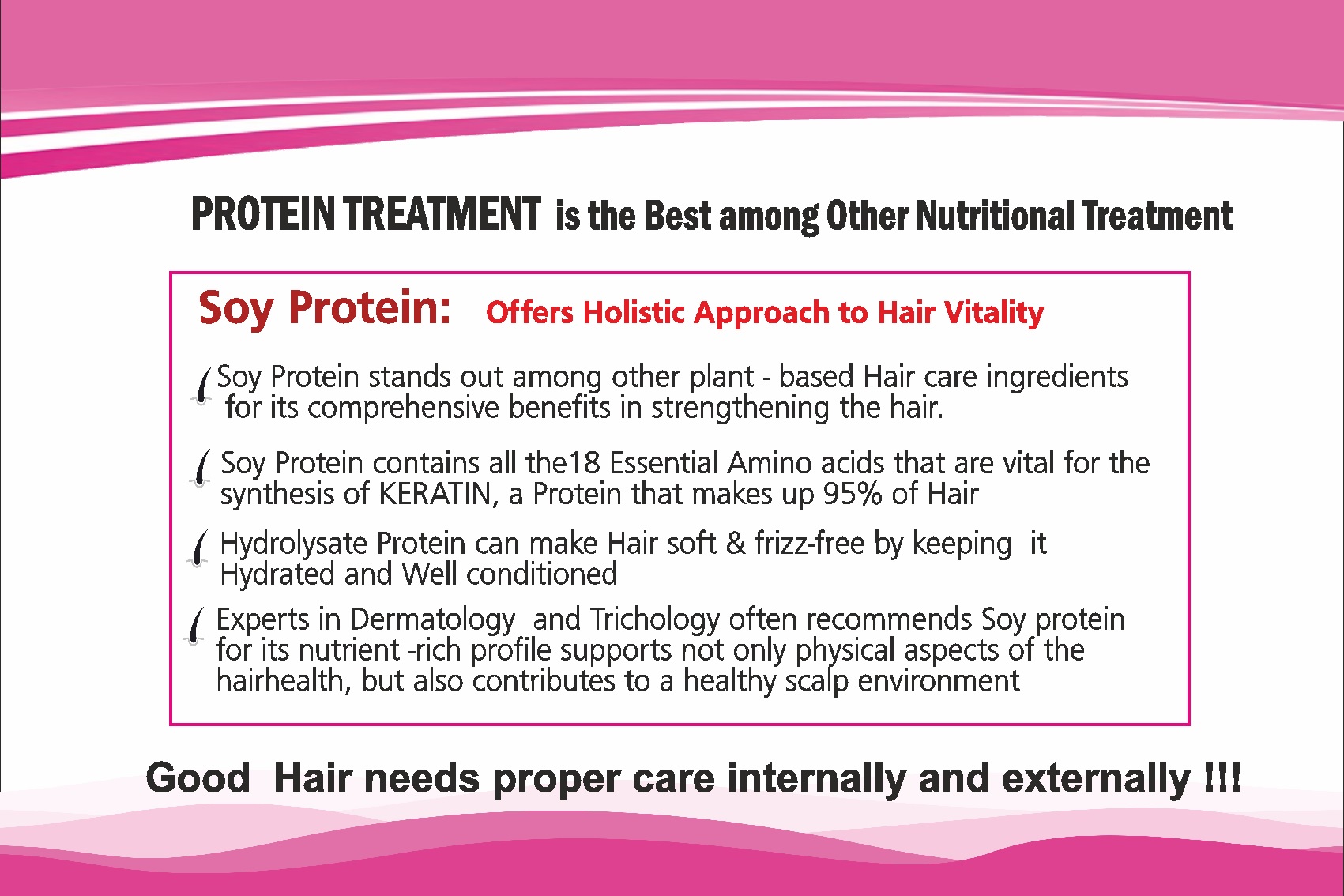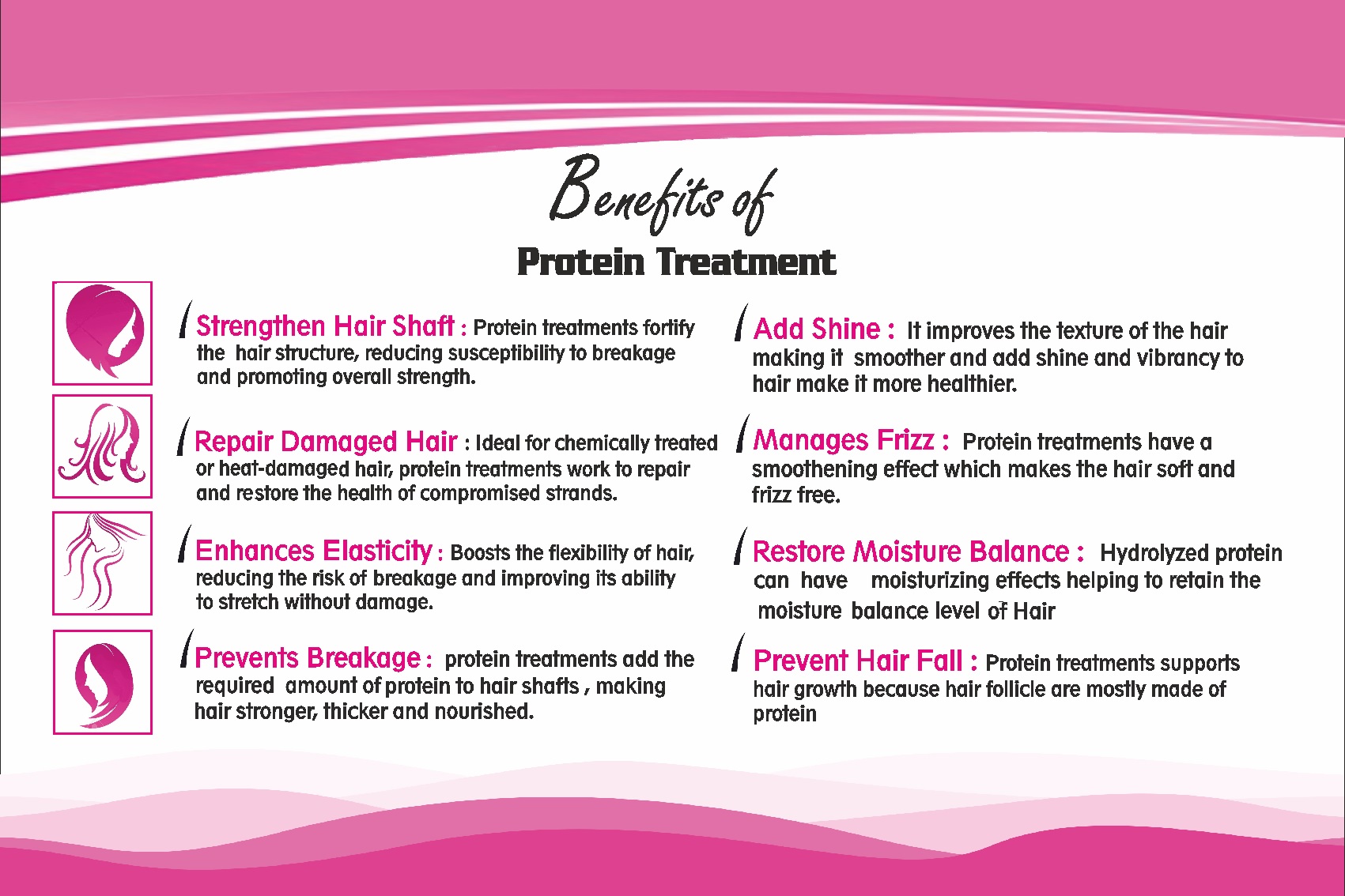 - The protein treatment not only strengthens the hair but also helps to improve moisture retention. Protein helps to keep the hair hydrated and nourished.